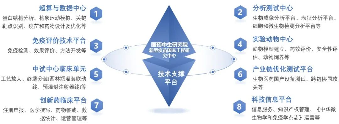 作为生物医药领域的国家队与战略科技力量,国药中生生物技术研究院(新型疫苗国家工程研究中心)始终将支撑平台体系视为服务国家创新战略的核心载体。以央企链主的使命担当,通过八大平台开放共享: