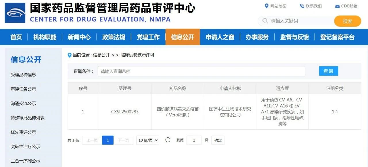 7月2日,由国药中生研究院(新型疫苗国家工程研究中心)自主研发的I类创新产品--四价肠道病毒灭活疫苗(Vero细胞)获得国家药品监督管理局颁发的临床试验批准通知书。该疫苗是研究院继成功研发EV71灭活疫苗上市并广泛应用后,在创新疫苗研发领域的又一突破性进展。这款具有更广泛防护能力的迭代产品获准进入临床验证阶段,是对研究院自主构建的通用型灭活疫苗技术平台稳定性、可拓展性和高效迭代能力的有力证明。